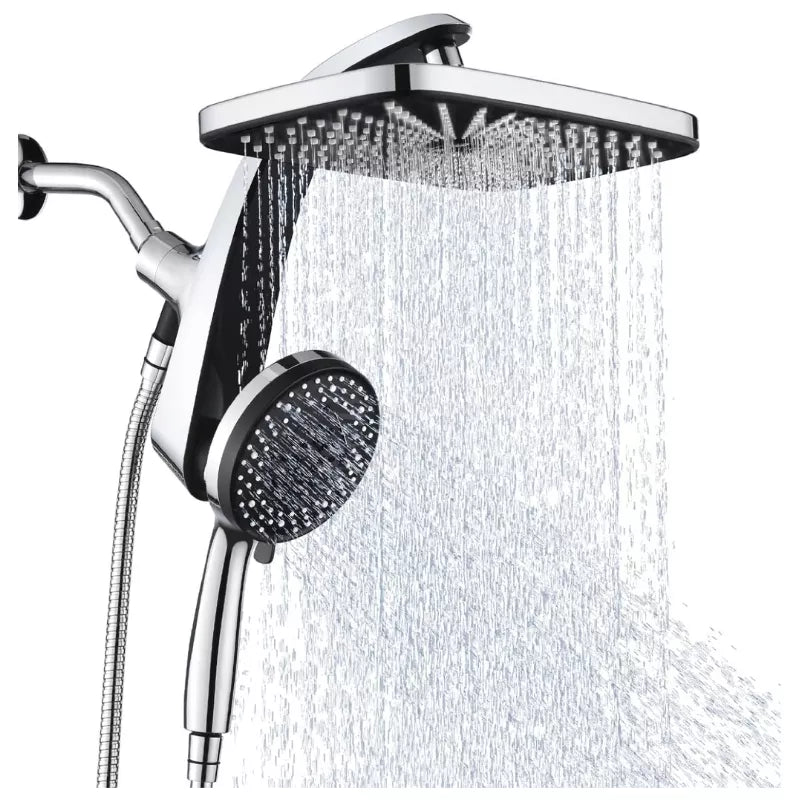 - Larger coverage shower heads with handheld spray combo, our large 12 inch square shower head allows for full body water coverage. Equipped with 10 spray settings hand held shower head, you can enjoy cozy showering, extra 2 different mode power jets can clean your pets or wash your bathroom and bath easily